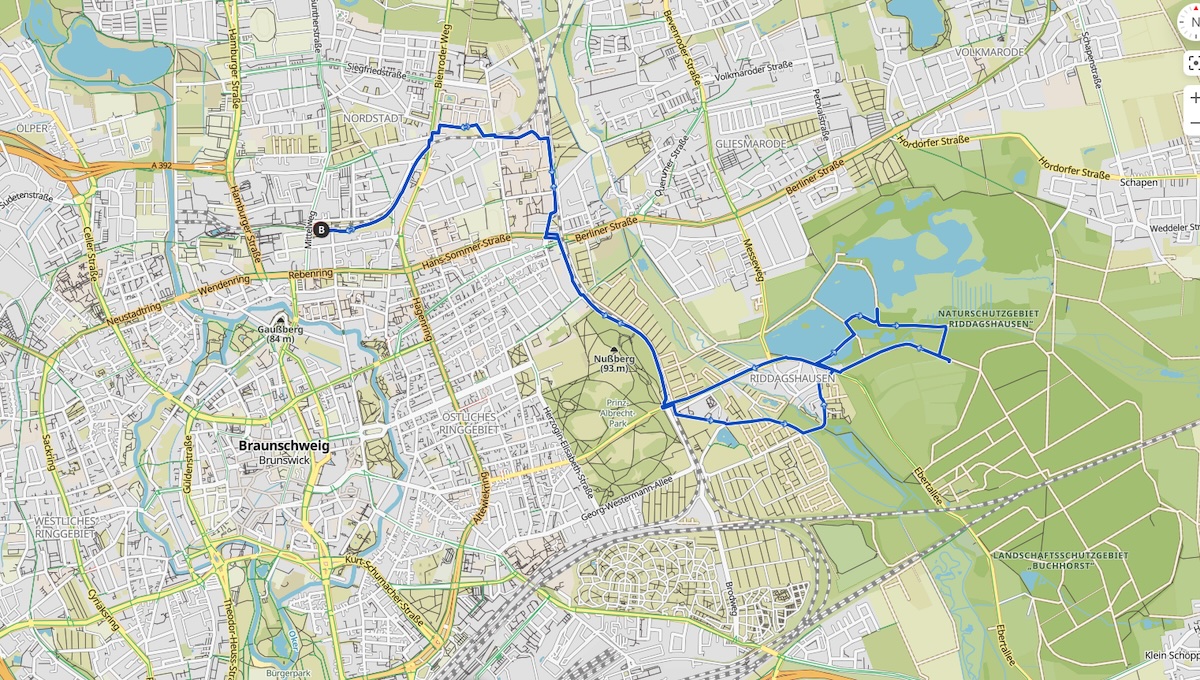„Anstatt zu Fuß ging es diesmal mit dem Rad in die schöne Natur rund um Riddagshausen. Gestartet am Nordbahnhof ging es entlang des Ringgleises vorbei am Nußberg und dem Kloster Riddagshausen. Gemütlich und bei bester Laune erreichten wir mit unserer kleinen Reisegruppe das Cafe Teetied als ausgemachten Treffpunkt, um dort mit dem Umweltpädagogen und Waldführer Gelu Ispas auf Entdeckungstour zu gehen/fahren.