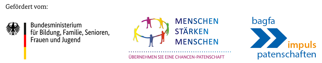 Das Projekt „Chancenpatenschaften“ wird gefördert vom Bundesprogramm „Menschen stärken Menschen“ mit Mitteln des Bundesministeriums für Familie, Senioren, Frauen und Jugend (BMFSFJ) über die BAGFA.
